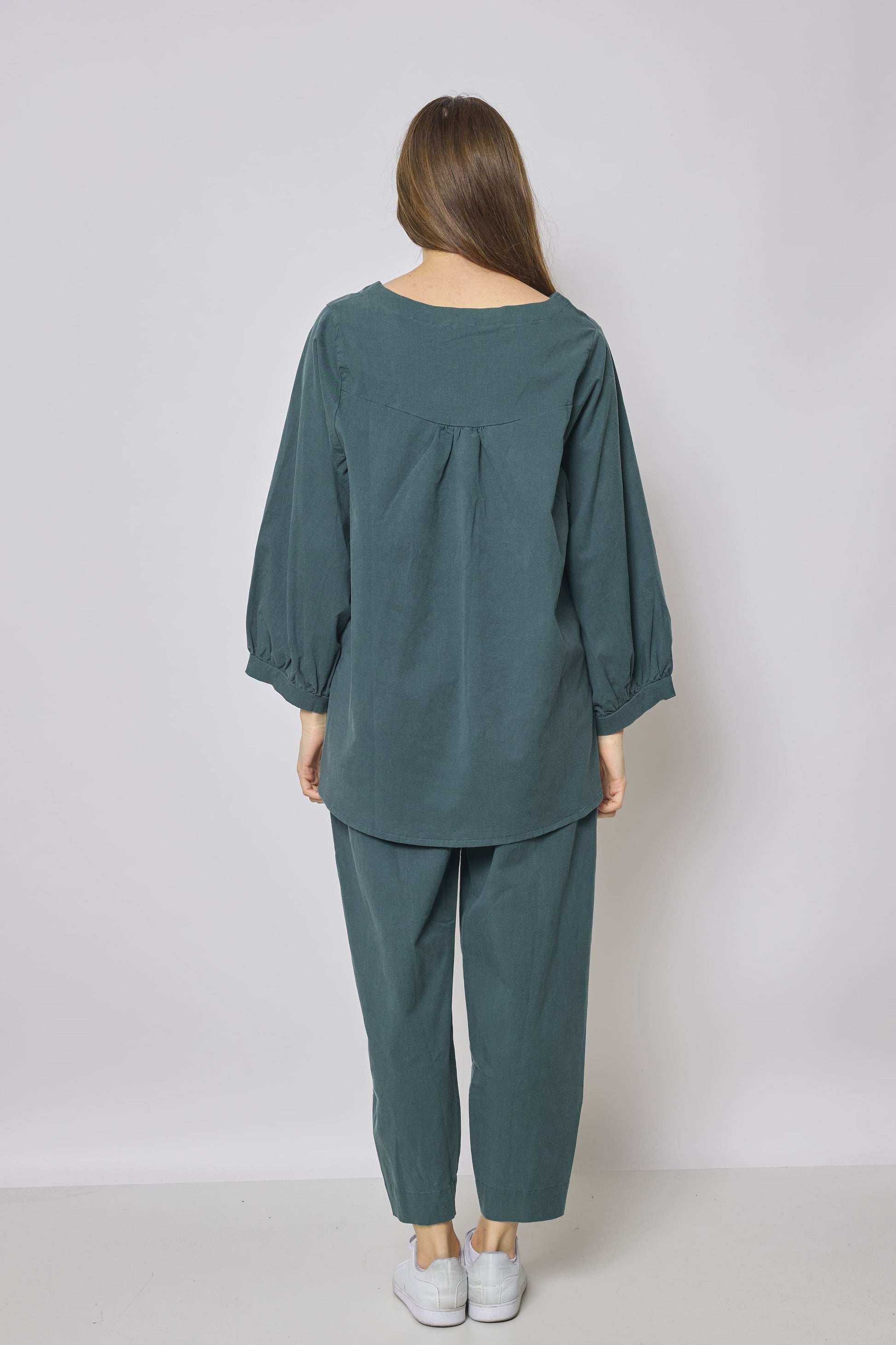 Aplique un toque de romanticismo y elegancia a su bata de otoño de invierno con nuestra magnífica blusa de mangas bouffantes. Las mangas bouffantes añaden un toque de volumen y feminidad a esta pieza contemporánea. Que esto sea para una ocasión especial, una salida a la ciudad o incluso para un día de trabajo, esta blusa polivalente se adapta a todas las situaciones. Combínalo con un vestido midi y pantalones para un look chic y sofisticado, o con unos vaqueros y cestas para tener un estilo descontracturado. Con una textura suave, te sentirás cómodo y elegante en esta blusa de mangas bouffantes.