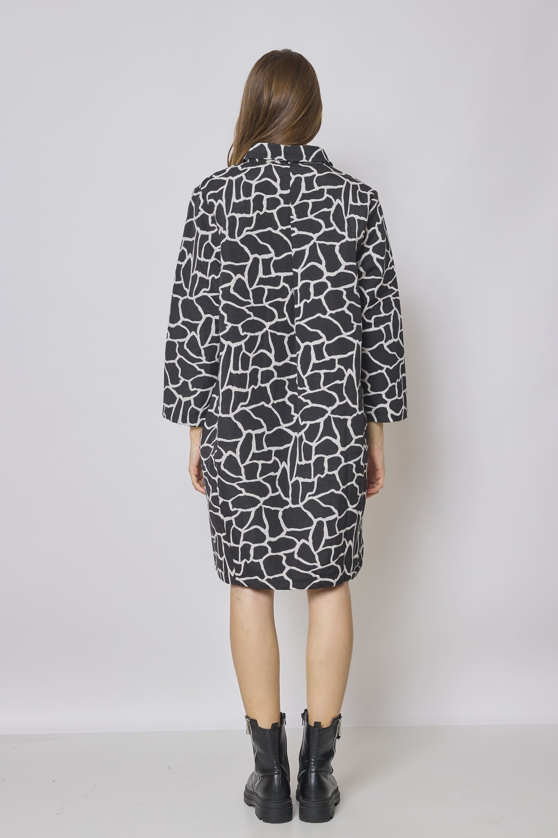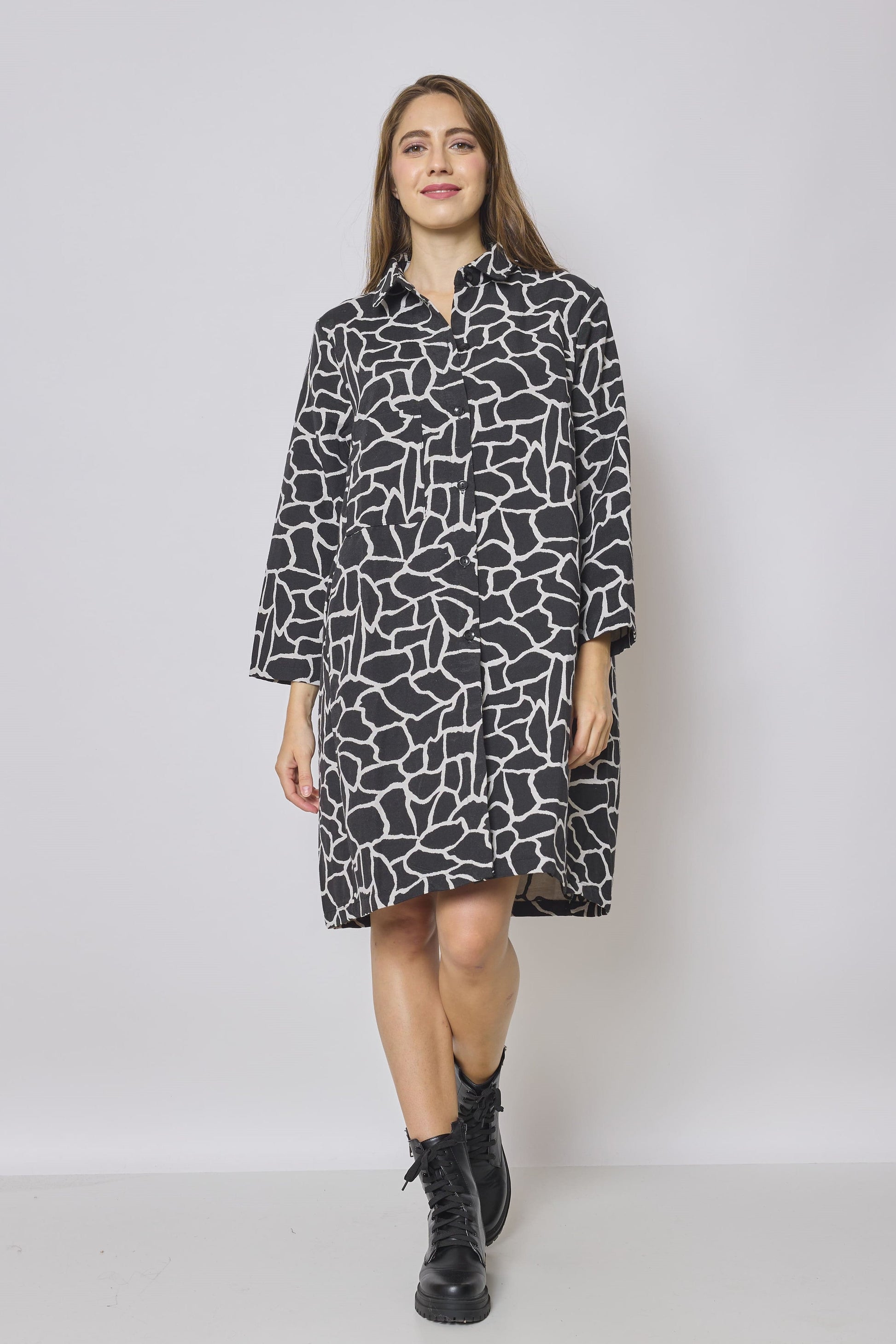 Découvrez notre élégante robe chemise noire et blanche, un incontournable pour la saison automne-hiver. Cette robe chemise de coupe classique a une allure élégante, grâce à son encolure haute, ses manches allongées et son ourlet ajusté. Que ce soit pour une réunion d'affaires, une soirée entre amis ou un rendez-vous romantique, cette robe polyvalente convient à toutes les occasions. Portez-la avec des collants opaques et des bottines pour un look tendance et confortable, ou avec des talons hauts et des accessoires audacieux pour un look plus glamour. Avec notre robe chemise noire et blanche, vous serez toujours élégant et prêt à affronter les températures fraîches avec style.
